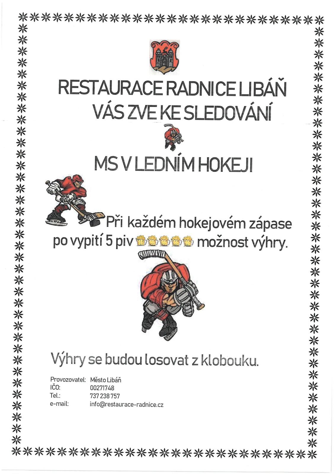 Zveme Vás na sledování Mistrovství světa v ledním hokeji 2019 do městské restaurace Radnice.